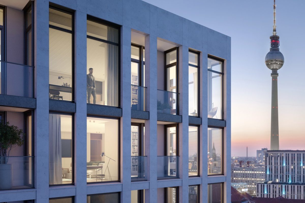 Grandaire’s three elegant buildings rise proudly on Voltairestraße right in the bustling heart of Berlin-Mitte. The penthouses are located in the tallest tower, for those after high-level living – both figuratively and literally – in one of Berlin’s tallest residential towers. At just a few minutes’ walk from the train station and the iconic Alexanderplatz, you’re in the middle of all things good, perfectly placed to enjoy a wide range of shops, restaurants, art and culture.